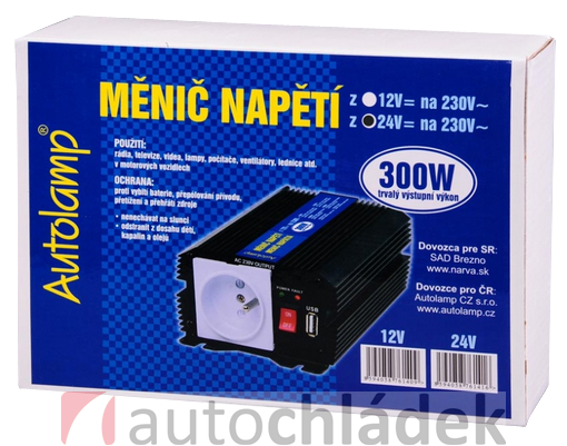 Provoz spotřebičů pro napájecí napětí 230 V v motorových vozidlech s napětím baterie 24 V.
