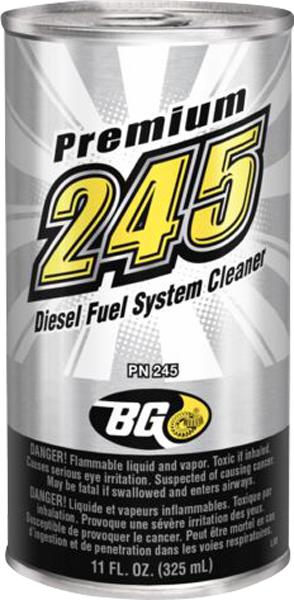 Dávkuje se celé balení do nádrže před tankováním, pak se nádrž naplní naftou. Nepřidávejte již žádná další aditiva do paliva při aplikaci BG245. Proces dekarbonizace a ošetření palivové a výfukové soustavy probíhá během každé jízdy. Není nutné jet po aplikace aditiva BG245 delší cestu. Jezdě s tímto koncentrátem v nádrži až k rezervě, poté natankujte naftu a přidejte si klasický aditiv do nafty. Naopak jezděte tak, jak jste jezdili dosud. Aditiv působí v motoru i po zhasnutí motoru, dokud se neodpaří. Dokonale odstraňuje ze systému vodu, čistí vstřiky, lamba sondu, katalyzátor a filtr pevných částic. Odstraňuje měkké i pevné úsady z celého systému. Svým působením srovná a zklidní chod motoru, navrátí mu výkon a může i snížit spotřebu paliva. Tento produkt je výkonějším nástupcem produktu BG244.