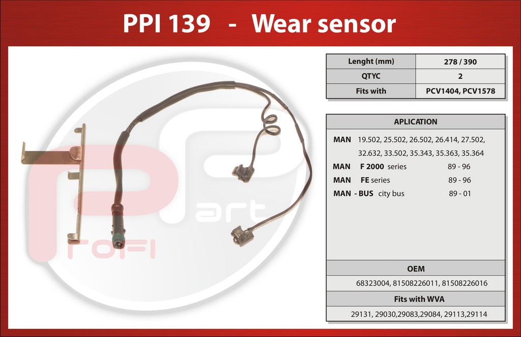 Čidlo brzdových desek MAN DAF 29088 bez držáku