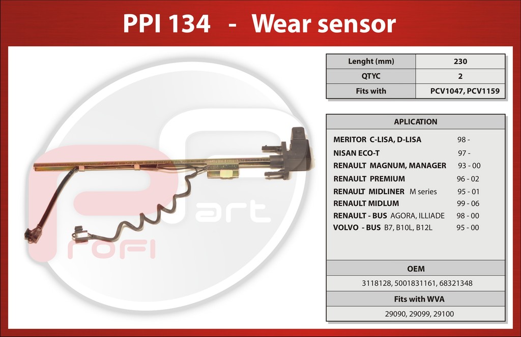 Čidlo brzdových desek RVI, CITYBUS, CITELIS, VOLVO