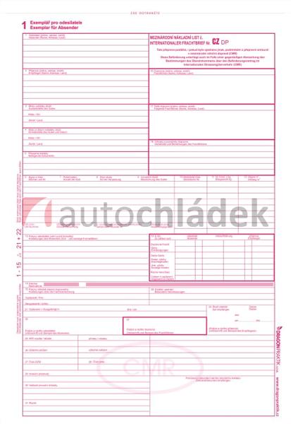 Základní jízdní dokument pro přepravu zboží v mezinárodní silniční dopravě. Jedná se o CMR bez potisku tzv. čistý CMR.