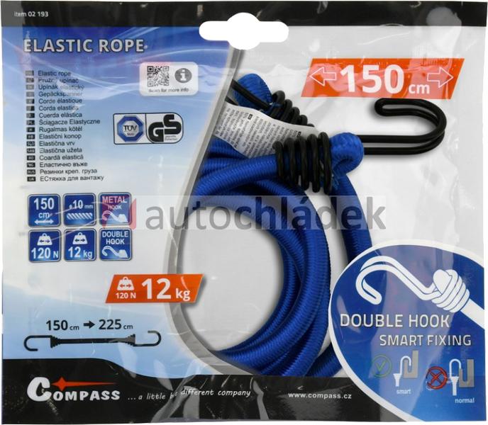 COMPASS Upínač pružný DOUBLE HOOK 10 mm/150 cm TÜV/GS