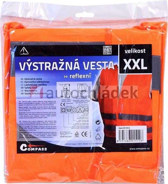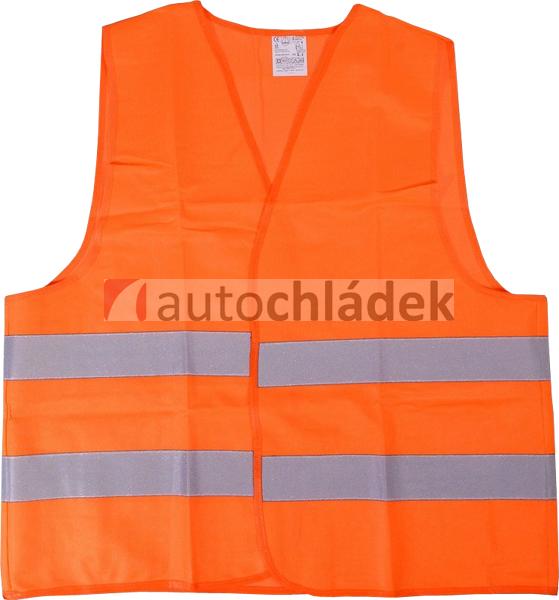 Výstražná reflexní vesta (ochranný oděv s vysokou viditelností) se zapínáním na suchý zip. Dva reflexní pruhy po celém obvodu, oranžová barva.