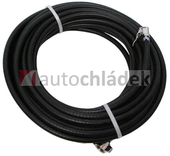 Kompresorová hadice na huštění (dofukování) pneu s koncovkami.
