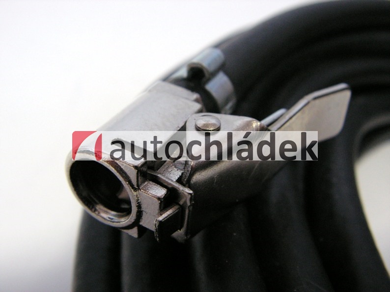 Kompresorová hadice na huštění (dofukování) pneu s koncovkami.