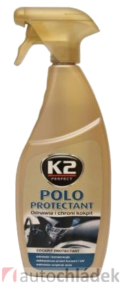 K2 POLO PROTECTANT je revoluční přípravek na osvěžení, lehké vyleštění a ochranu před prachem všech povrchů z plastů a gumy. Po ošetření povrchy získají nový vzhled a zůstanou dlouho zabezpečené před opětovným vyblednutím a vysušením. Obsah speciálních antistatických substancí a UV filtr dodatečně ochrání povrchy. Pozor:Nepoužívejte na pedály brzd, plynu, spojky, dezén pneumatik, podlahy, čalounění a sklo.