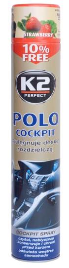 K2 POLO COCKPIT STRAWBERRY - slouží k čištění, naleštění a regeneraci všech plastů interiéru vozu. Použité nanočástice ideálně vnikají do struktury ošetřovaného materiálu, čímž obnovují původní barvu a lesk.