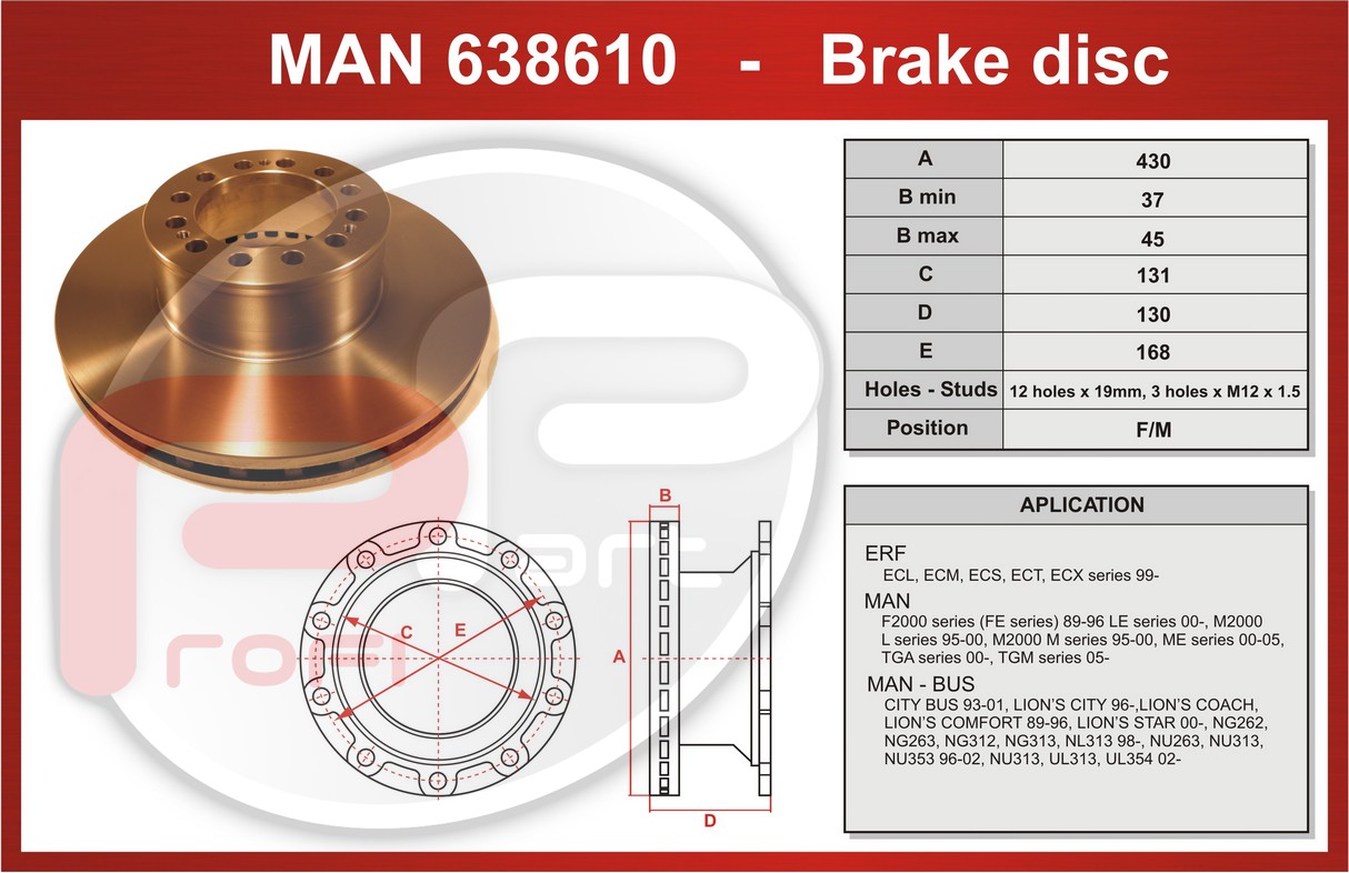 Kotouč brzdový MAN TGA 12 děr