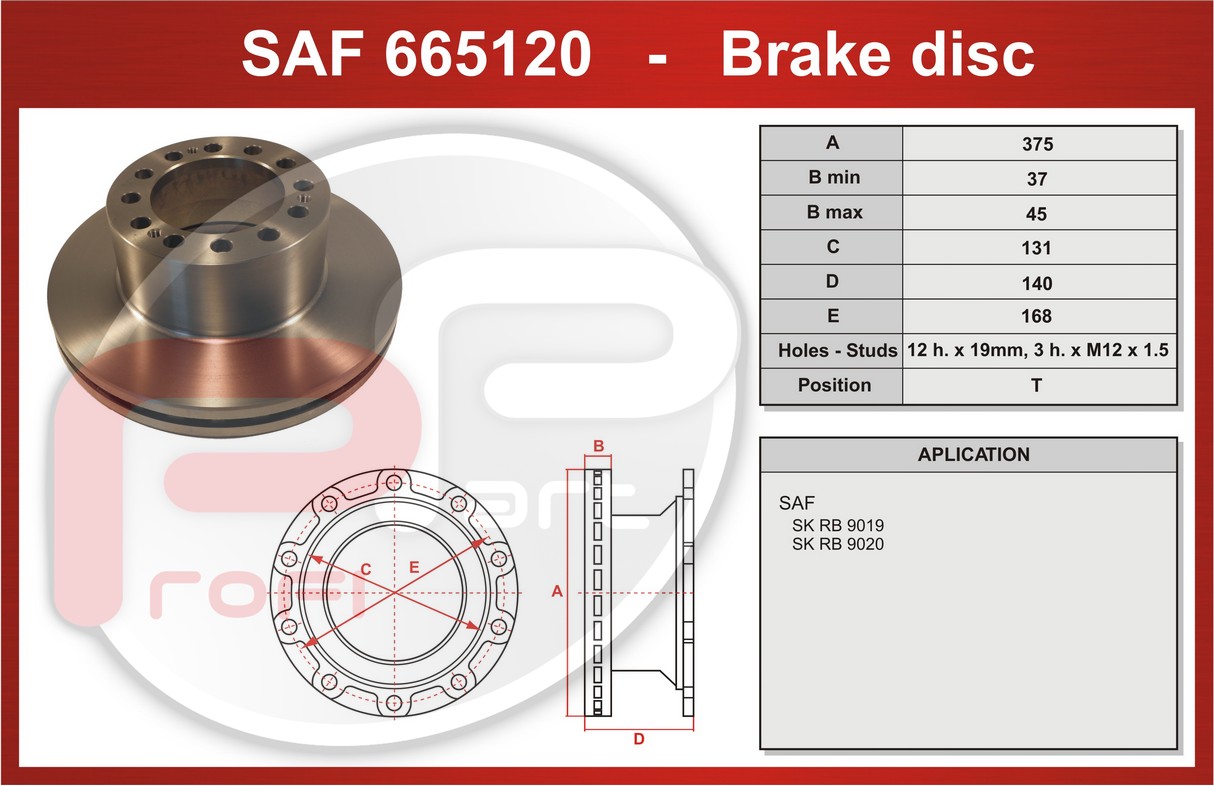 12 děr s Ø 19 mm, 3 díry s M12x1,5 mm