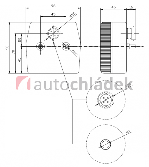 Žárovky: 1x 12V/5W s paticí SV8,5 + 2x 24V/21W s paticí BA15s (není součástí balení)