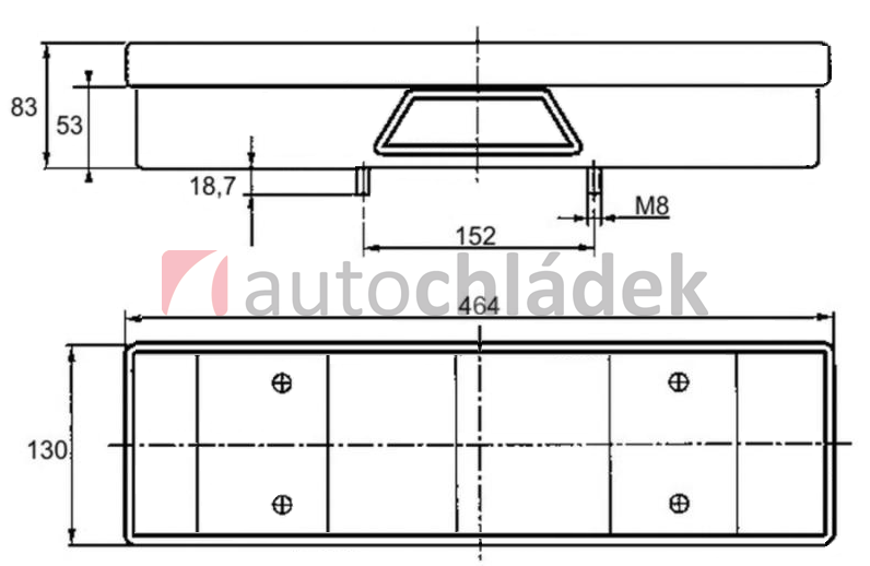 Rozměry: 464x130x83 mm, rozteč: 152 mm
