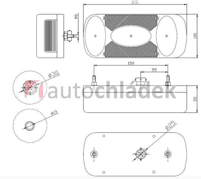 Vícefunkční lampa (blikač, brzdová lampa, couvací lampa, osvětlení SPZ, odrazka)
