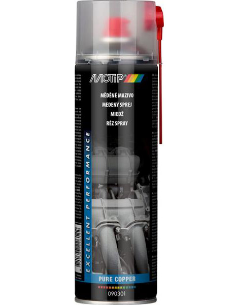 Sprej s vysokým obsahem mědi k mazání šroubových spojů, které jsou vystavené velmi vysokým teplotám.
