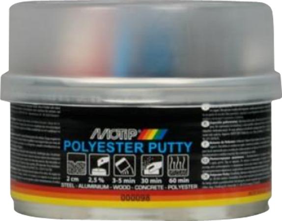 Univerzální dvousložkový polyesterový tmel k vyplnění otvorů na povrchu oceli, hliníku, dřeva, betonu a polyesteru.