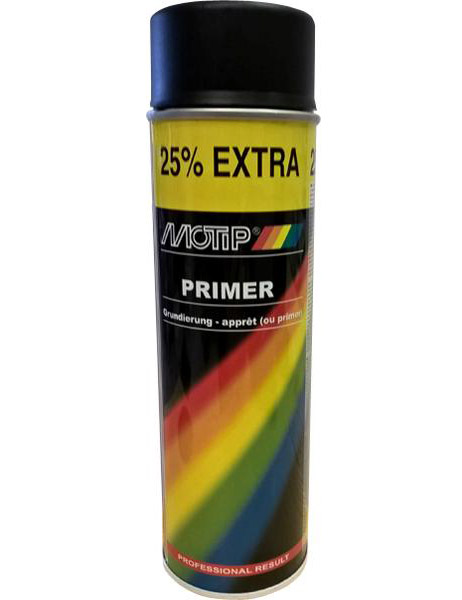 Motip Primer sprej je rychleschnoucí akrylový základní nátěr na dřevěné, kovové, hliníkové, skleněné a kamenné povrchy.