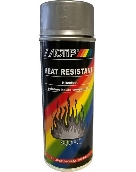 MOTIP 04032 je žáruvzdorný stříbrný lak (HEAT RESISTANT) ve spreji vhodný na ochranu povrchů vystavených velmi vysokým teplotám, jako jsou npř. grily nebo kamna.