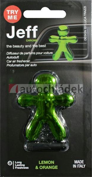 Vůně do auta Jeff je autovůně s originálním moderním designem za jehož návrhem stojí věhlasný italský designér Luca Trazzi. Provoňte vaše auto! Za pomoci univerzálního funkčního klipu připevníte na větrací otvory (vývod klimatizace) každého automobilu, vertikálně i horizontálně. JEFF pak za pomoci puštěného ventilátoru distribuuje stálou a dlouhotrvající vůni.