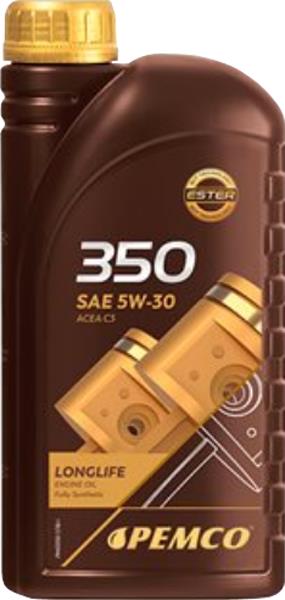PEMCO 350 je syntetický Mid SAPS motorový olej na bázi PAO + estery pro moderní benzínové a naftové motory s přeplňováním i bez přeplňování, včetně PD (Pumpe-Duse). Olej je navržen na základě požadavků VW a DAIMLER. Díky obsaženým esterovým složkám má vynikající vlastnosti proti tření a opotřebení, což zajišťuje dlouhý a bezproblémový provoz. Kompatibilní se všemi systémy následné úpravy výfukových plynů, DPF, TWC, EGR a SCR. Vhodné pro motory využívající CNG a LPG.