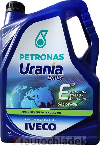 Plně syntetický motorový olej Petronas Urania Daily 5W-30. Plně syntetické motorové mazivo s vynikajícími vlastnostmi úspory paliva. Speciálně vyvinuté pro Iveco Daily s motory podle normy Euro III a Euro IV.