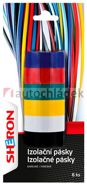 6 ks barevných izolačních pásek z nevodivého materiálu. Každá páska má jinou barvu, vhodné pro užití jako elektroizolační páska.
