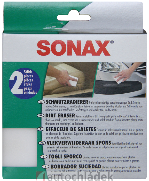 Houba na odstraňování nečistot - jemně pórovitá speciální houba na odstraňování znečištění z plastových částí ve vnitřním prostoru vozidla (např. špíny z podevší, krému na boty...) .