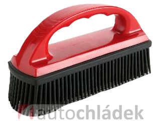 Kartáč se speciálními gumovými štětinami, pro jednoduché a rychlé odstraňování zvířecích chlupů z textilních povrchů, např. sedaček, čalounění, koberců apod.
