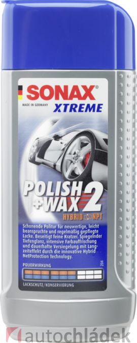 Leštěnka s voskem Polish and Wax 2. Leštěnka pro vyzrálé pastelové a metalické autolaky a lakované plasty s drobnými škrábanci a náznakem zmatnění. Jemné brusné složky odstraní drobné škrábance z laku, oživí barvy a navrátí původní lesk. NANO částice vosku dlouhodobě chrání před povětrnostními vlivy.