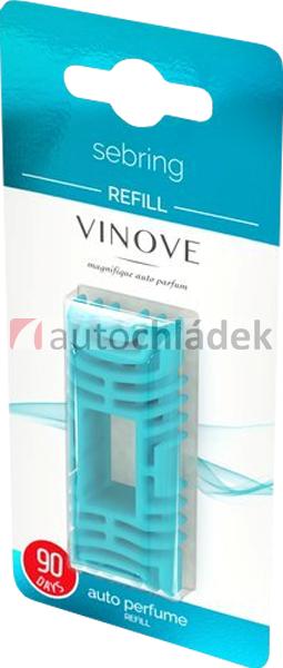 Náhradní náplň pro osvěžovač vzduchu VINOVE, osvěžovač vzduchu do auta určený pro přichycení do mřížky ventilátoru. Kombinuje francouzské parfémy a italský design. Vůně je pomalu uvolňována až po dobu 90 dní při průměrném používání vozu a při mírných teplotách.